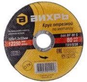 Круг отрезной по металлу 125х1.0х22мм Вихрь 73/1/3/27